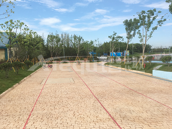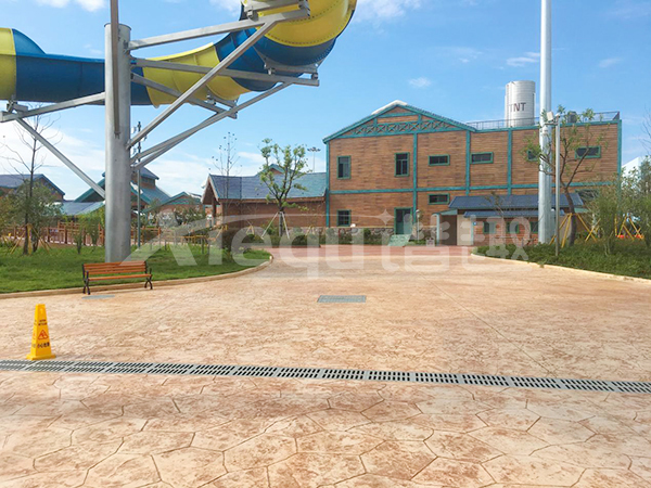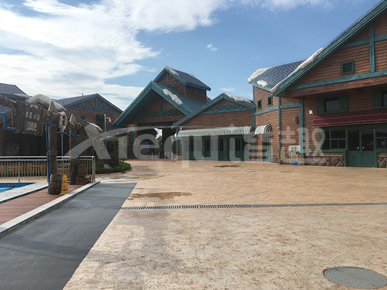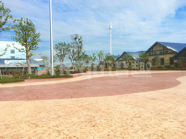 鋪裝類型:壓印藝術(shù)地坪、仿沙灘藝術(shù)地坪、水池底