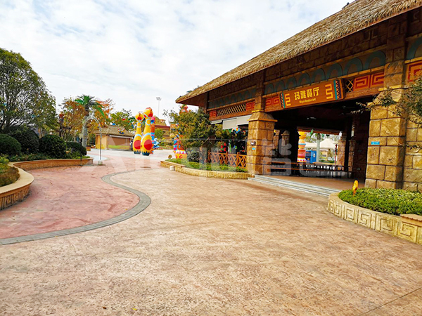 鋪裝類型:壓印藝術地坪、洗砂面藝術地坪、圖案彩色密封