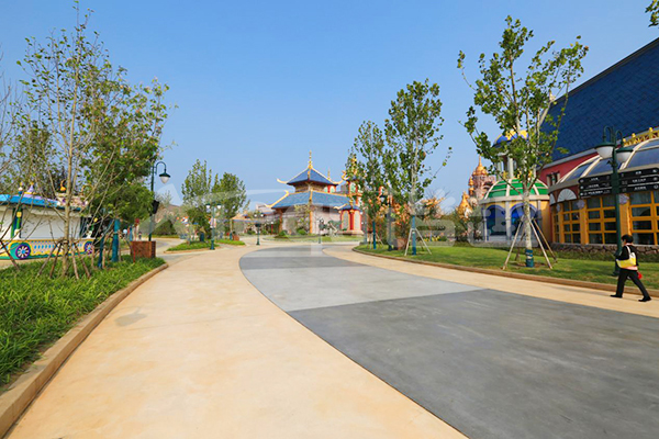 鋪裝類型:彩色混凝土洗砂面藝術地坪、壓印藝術地坪