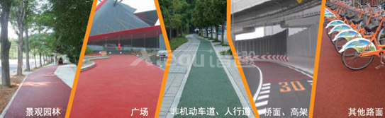 冷拌彩色瀝青混凝土面層系統(tǒng)采用冷拌合冷施工工藝,對色粉耐高溫性能基本無要求,降低了混合料色粉的門檻,從而使彩色瀝青在顏色的選擇上可以根據(jù)要求任意調(diào)配,增加了彩色路面的色彩多樣性。而且紅、橙、黃、綠、藍(lán)等顏色的成本基本接近。